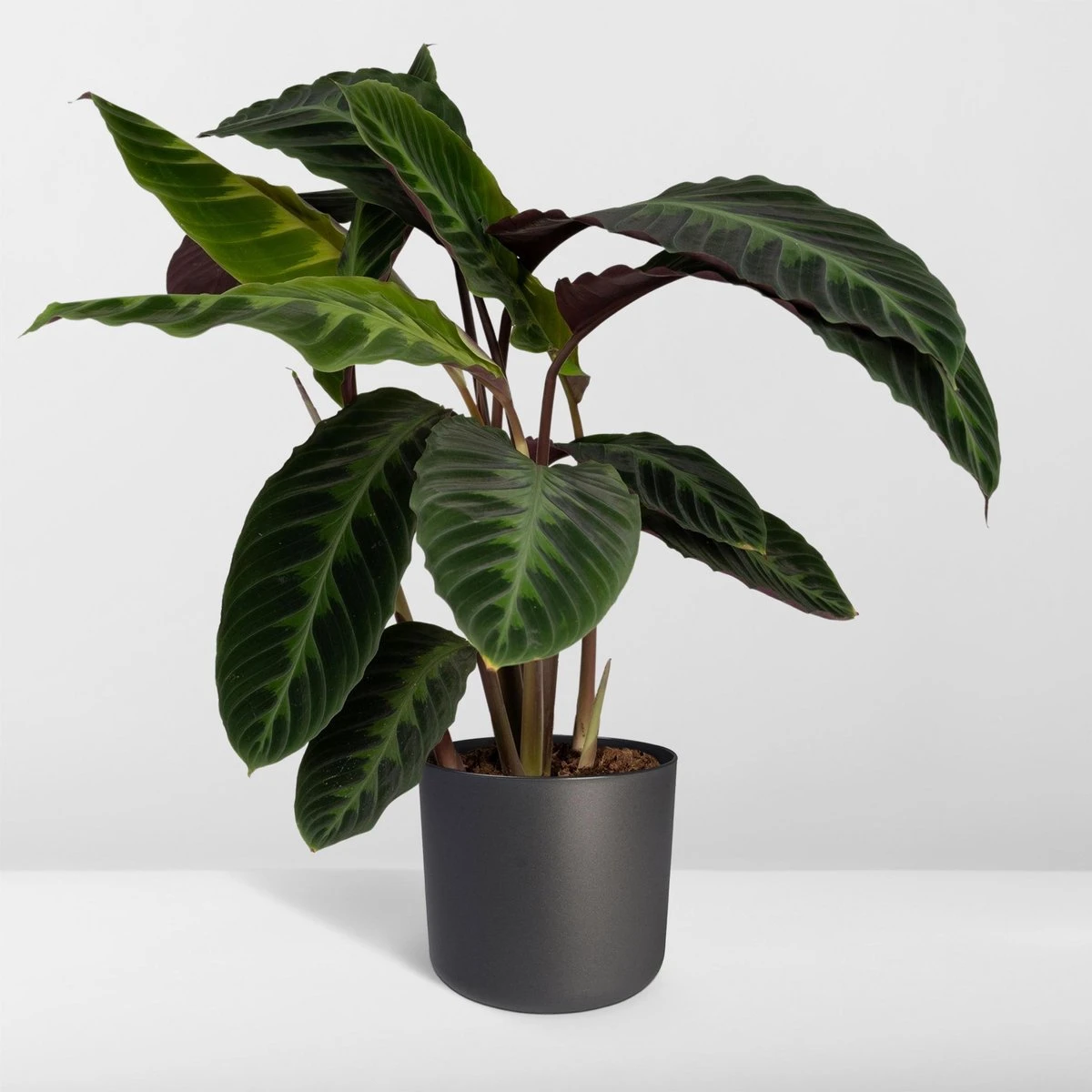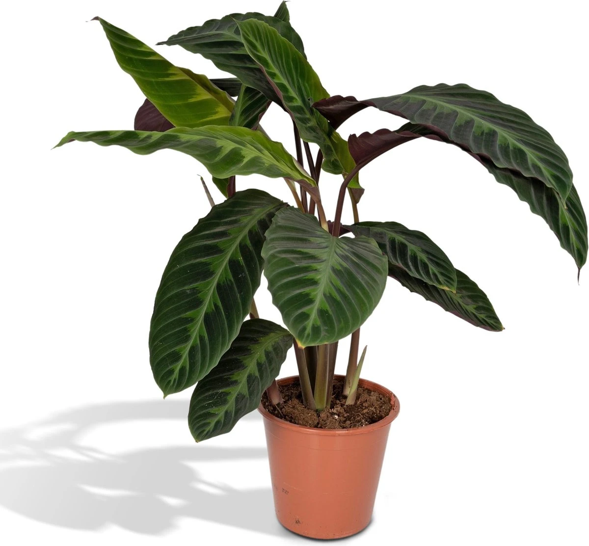 De Calathea Warscewiczii is een tropische kamerplant en wordt ook wel the living plant genoemd. Deze bijnaam heeft de Calathea te danken aan een unieke eigenschap. De bladeren van de Calathea sluiten zodra het donker wordt en zodra het weer licht wordt gaan de bladeren weer open. De Calathea komt oorspronkelijk uit de oerwouden van Zuid-Amerika, waar de plant een hoge luchtvochtigheid gewend is. Je kunt de plant regelmatig sproeien met een plantenspuit. De Calathea kun je het beste regelmatig kleine beetjes water geven. Zorg ervoor dat de potgrond altijd licht vochtig is. In de winter kun je de Calathea wat minder water geven. Zodra de verwarming aangaat wordt de lucht droger. De Calathea is geen droge lucht gewend. Om te voorkomen dat de plant dood gaat is het belangrijk om regelmatig te blijven sproeien. De beste standplaats voor deze plant is in halfschaduw. Plaats de Calathea op een lichte plaats, maar niet in direct zonlicht. Let op: planten zijn een levend product en kunnen afwijken van de foto en omschrijving. Onze planten worden geleverd in een plastic kweekpot. Alle planten worden direct verpakt en verzonden vanuit de kwekerij.