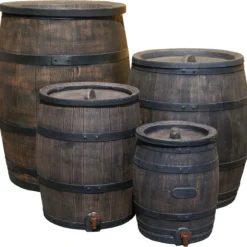 Complete Set: Regenton Bronzen Band 235 Ltr | Hout Effect | Handbewerkt | Inc.voet & Vulautomaat